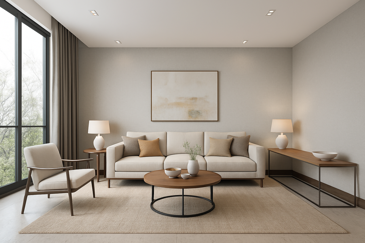 Furniture plus decor, accent walls, and artwork. Ideal for marketing materials that wow.